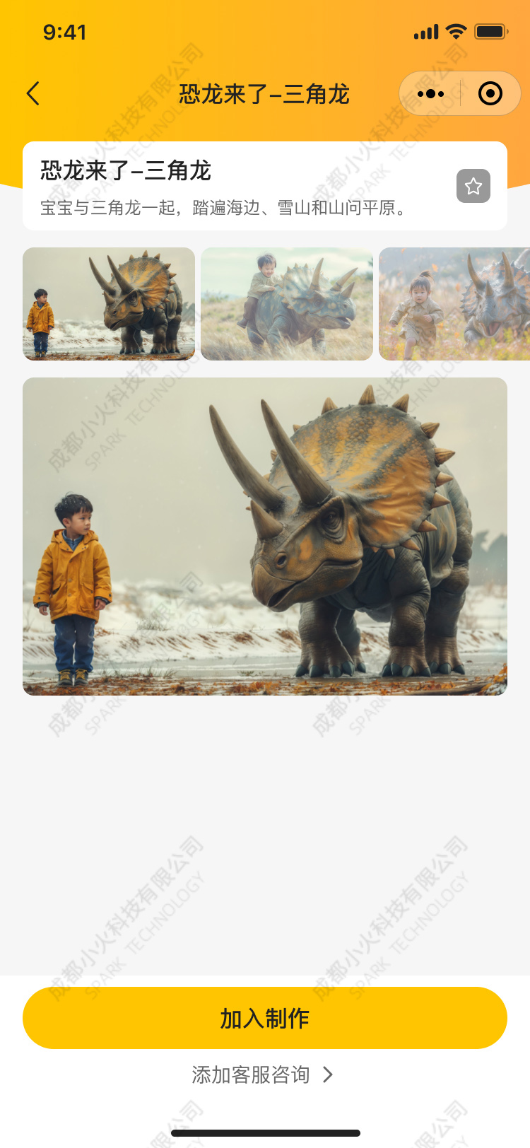 AI兒(ér)童夢幻電(diàn)子(zǐ)相(xiàng)冊,通(tōn§Ω✔g)過AI可(kě)以實現(xiàn)兒(ér)童多(duō)場(chǎng)景↑♦©的(de)“穿越”。這(zhè)是(shì)成都(dōu)小(xiǎo)火(h♦∑uǒ)科(kē)技(jì)公司為(wèi)客戶定制( ®™zhì)開(kāi)發的(de)一(yī)套AI寶寶圖φφ集,專注于為(wèi)6個(gè)月(yuè)到(dào)10歲兒(ér)童實現(xβγ±iàn)超現(xiàn)實的(de)圖片。恐龍、蛋殼、動物(wù)、寵物(wù)®δ、科(kē)幻、競技(jì)等場(chǎng)景,都(dōu)是(shì)可(kě)以選®∏擇的(de)。